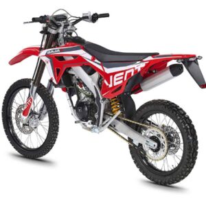Die BAJA RR 50 wurde mit dem technischen Erbe und der Erfahrung aus dreißig Jahren internationalen Offroad-Wettbewerben konzipiert und gebaut. Sie beeindruckt mit einer exklusiven Ausstattung, die sich in raffinierten und fortschrittlichen technischen Lösungen ausdrückt, die sie in ihrer Kategorie einzigartig machen. Der umlaufende Rahmen und die Schwinge sind aus Aluminium, um das Motorrad noch leichter zu machen, während das überdimensionierte Bremssystem von der italienischen Firma BCA hergestellt wird. Die 41-mm-Upside-down-Gabel und das neue HM-Link-Monofederbein sind beide einstellbar. Diese Eigenschaften machen die Leistung der BAJA RR 50 unter allen Fahrbedingungen zu einer Spitzenleistung: auf der Straße, wenn der Gebrauch eher „gemäßigt“ ist und die Vorschriften eingehalten werden, und im Gelände, wenn der „Biss“ entfesselt wird und das Motorrad sich auf dem ihm am meisten zusagenden Terrain von seiner besten Seite zeigen kann. Das BAJA RR 50 wird durch den 28-mm-Lenker in Black Finish mit speziellen Lenkerplatten und Grafiken, die an die Farben des offiziellen Enduro-Teams VENT erinnern, vervollständigt.
