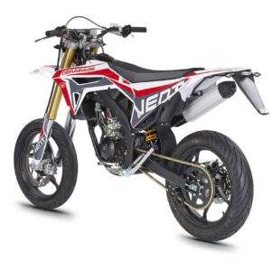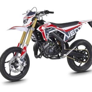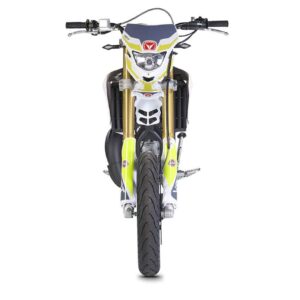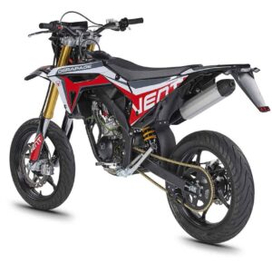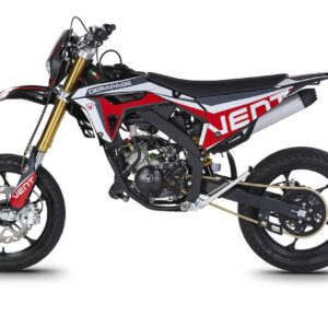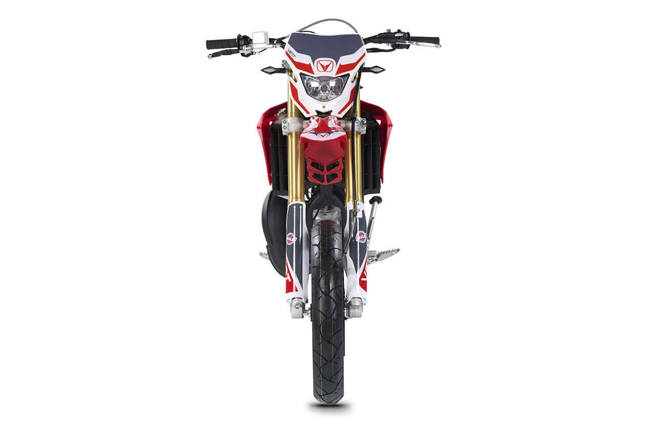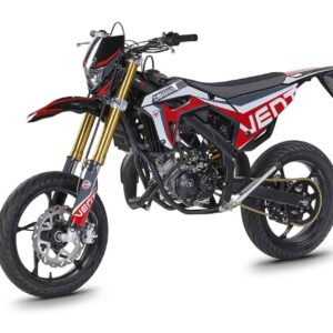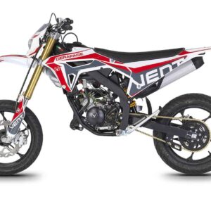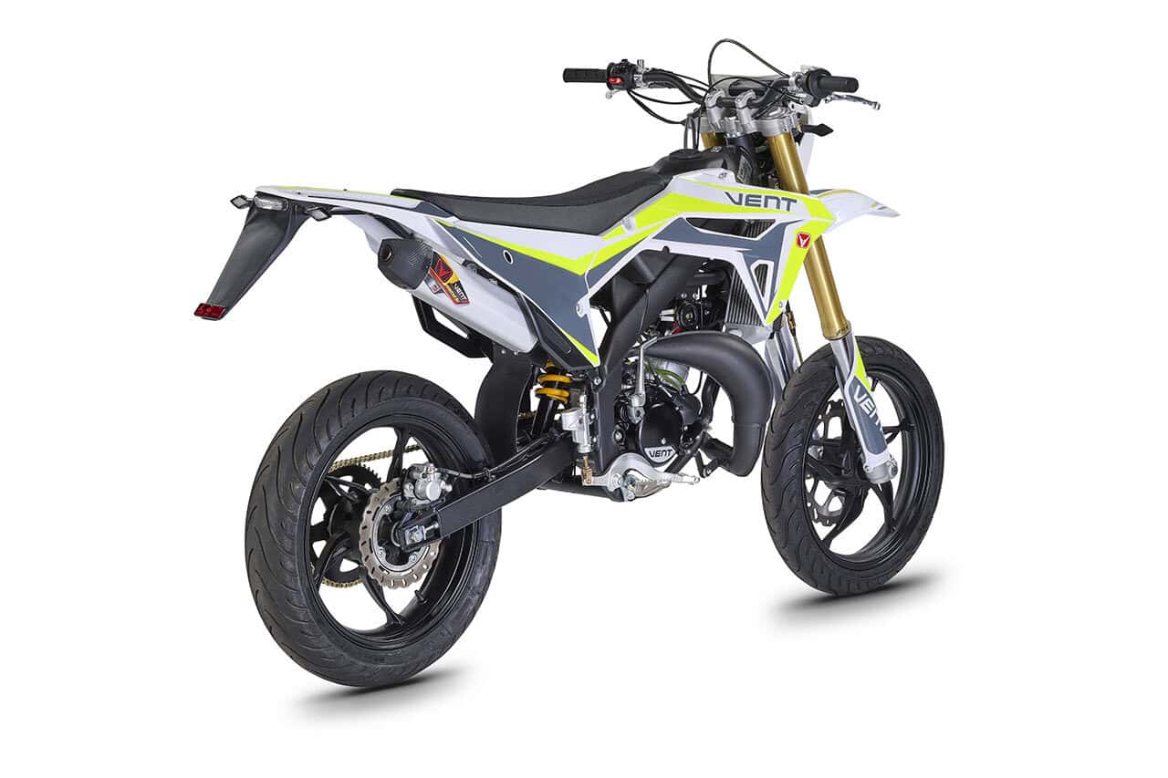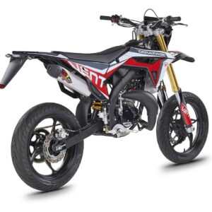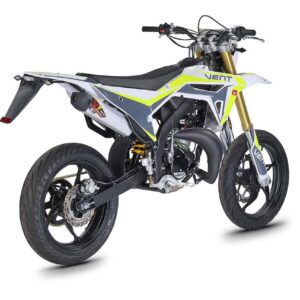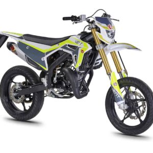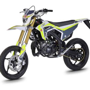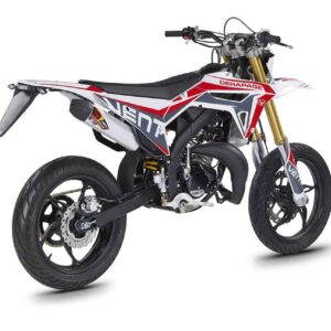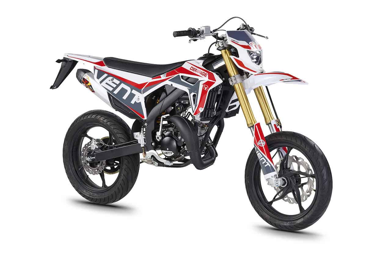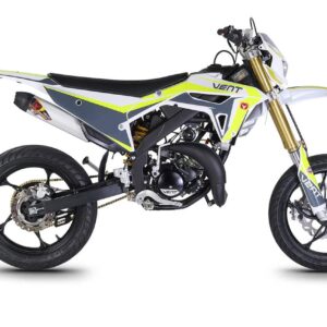 Die erste Erfahrung mit dem Motorrad wird für immer in Erinnerung bleiben! DERAPAGE 50 ist die Motard , mit der man sich dem täglichen Verkehr stellen kann, um sicher zur Schule zu fahren und mit Freunden Spaß zu haben, ohne dabei auf echten Rennstil zu verzichten, dank der Replika-Grafik des VENT-Teams , das an der nationalen Motard-Meisterschaft teilnimmt, und der fortschrittlichen technischen Ausstattung , die einem Motorrad mit größerem Hubraum würdig ist. Der spritzige Minarelli 50 ccm 2-Takt-Motor der neuesten Generation, der robuste Perimeter-Rahmen in Verbindung mit der 41 mm Upside-Down-Federung und die leistungsstarke Bremsanlage mit 290 mm Scheiben machen die DERAPAGE 50 zum Referenzmotorrad auf dem Markt in Bezug auf Leistung, Zuverlässigkeit und Sicherheit.