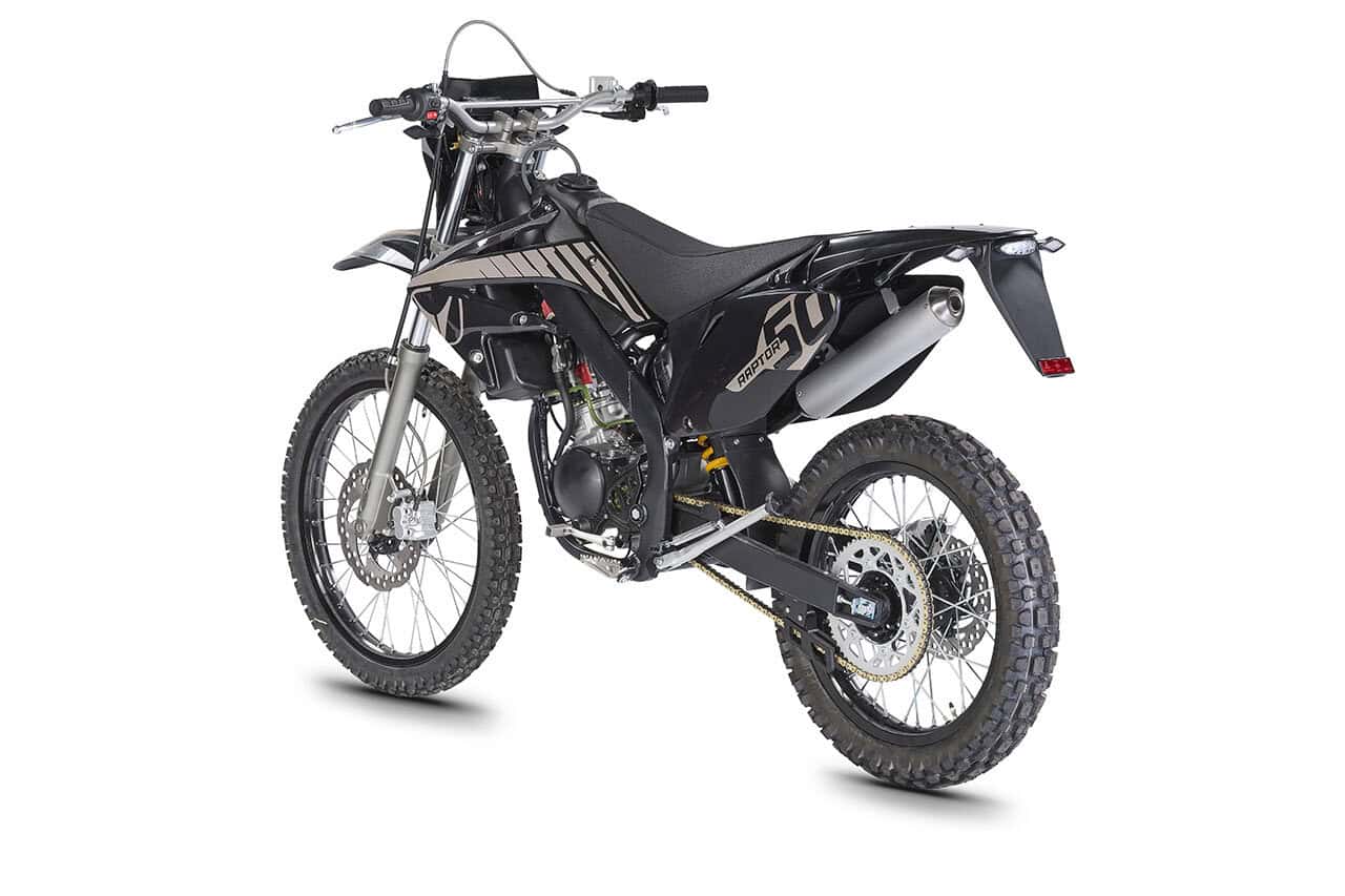 Dein erstes Offroad-Motorraderlebnis wirst du für immer im Herzen tragen!Der Raptor ist die 50cc-Maschine, die dich in die Welt von VENT einführt — für Unabhängigkeit und Fahrspaß bei voller Sicherheit.Mit einem einzigartigen Stil und beeindruckender Wendigkeit für den Offroad-Einsatz. Der fortschrittlichste **Minarelli 50cc 2-Takt-Motor** der neuesten Generation, kombiniert mit einem **Perimeterrahmen**, der von Motocross-Maschinen stammt, macht den Raptor 50 zur Spitzenklasse in seinem Segment — und ermöglicht dir den perfekten Einstieg in deine Offroad-Abenteuer.